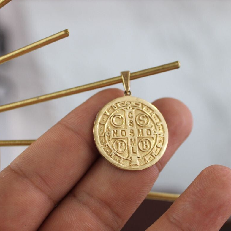 DIJE SAN BENITO ORO BLANCO Y DORADO